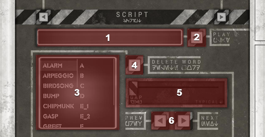* Select a category then choose a word within that category. All words that are eligible to follow the previously scripted word (according to the speech AI) are highlighted in green.